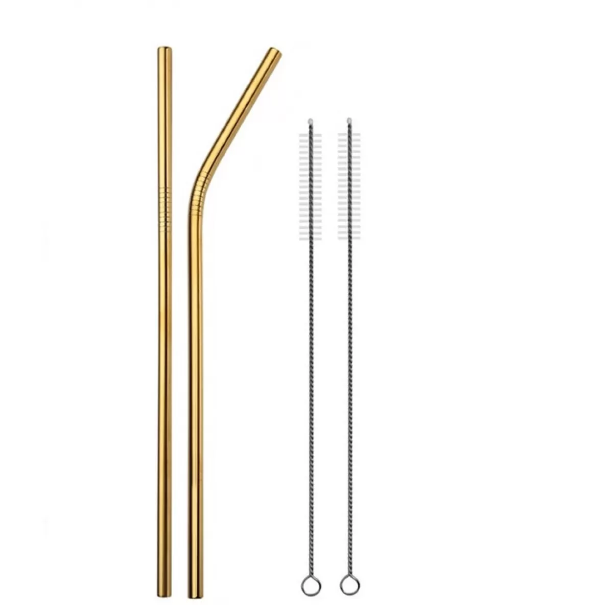 2 Μεταλλικά καλαμάκια 21.5cm χρυσό και 2 βουρτσάκια καθαρισμού