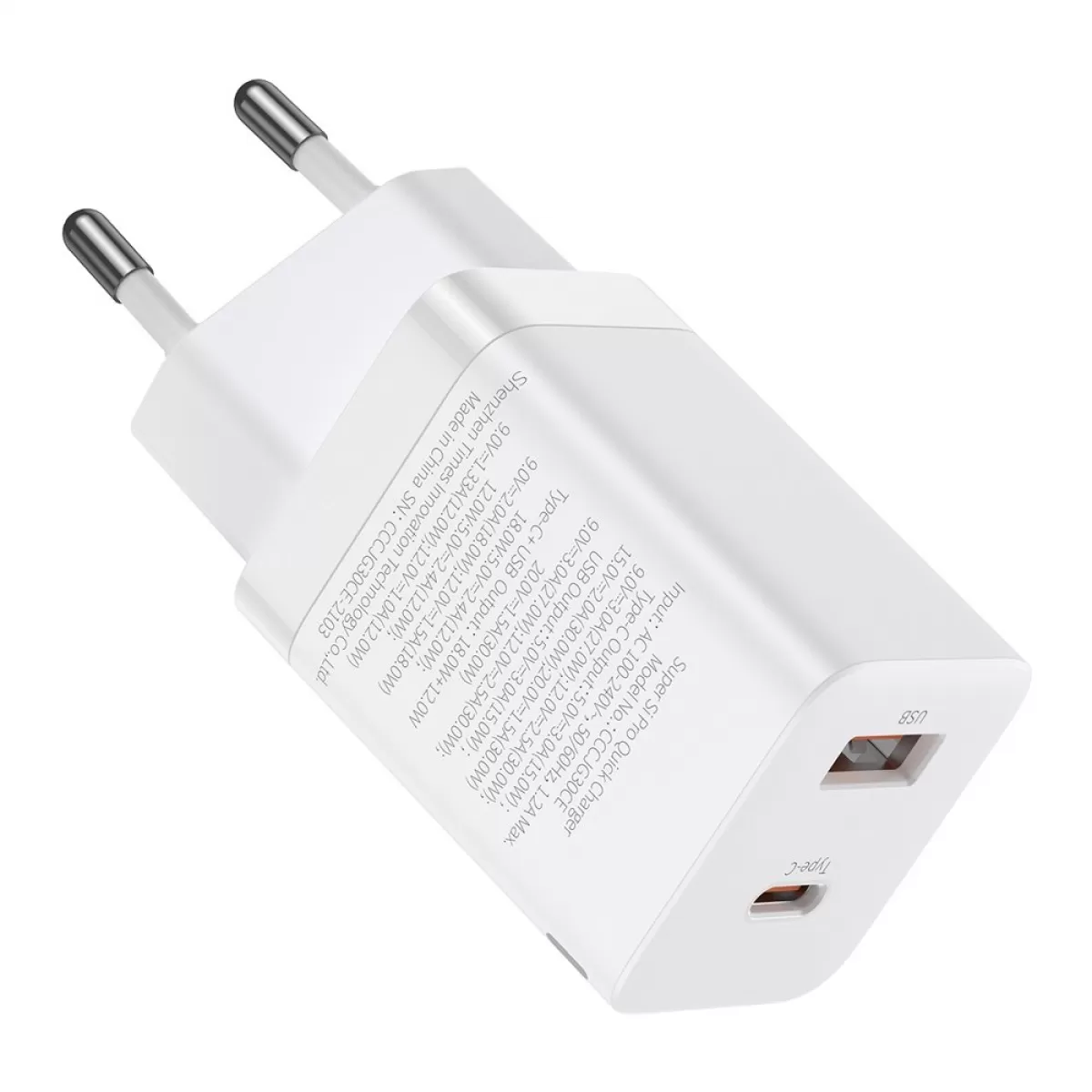 Baseus Super Pro fast wall charger USB / USB Type C 30W Power Delivery Quick Charge white (CCSUPP-E02)