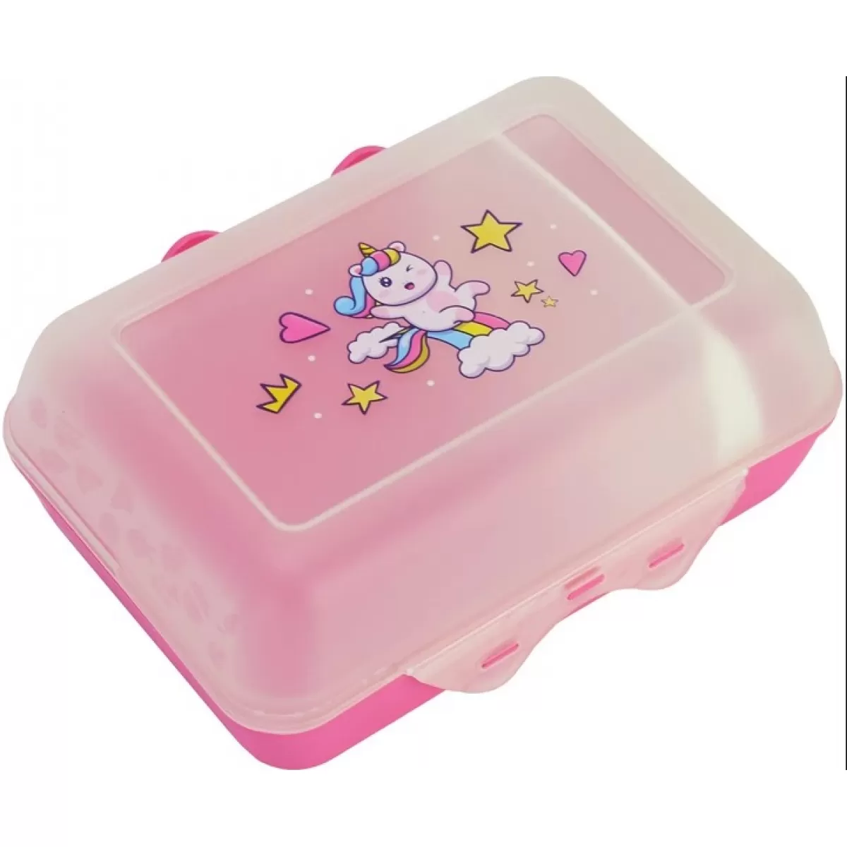 Δοχείο φαγητού πλαστικό ροζ διαφανές unicorn 850ml 165x120x70mm Papirus 98114