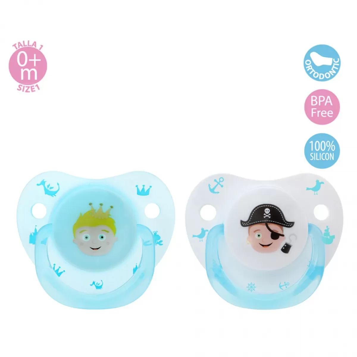 Σετ πιπίλας πρίγκιπας- πειρατής, από την Ισπανική Kiokids, με όμορφη σχεδίαση! Κατασκευασμένη από 100% σιλικόνη υψηλής ποιότητας με ορθοδοντικό σχήμα.