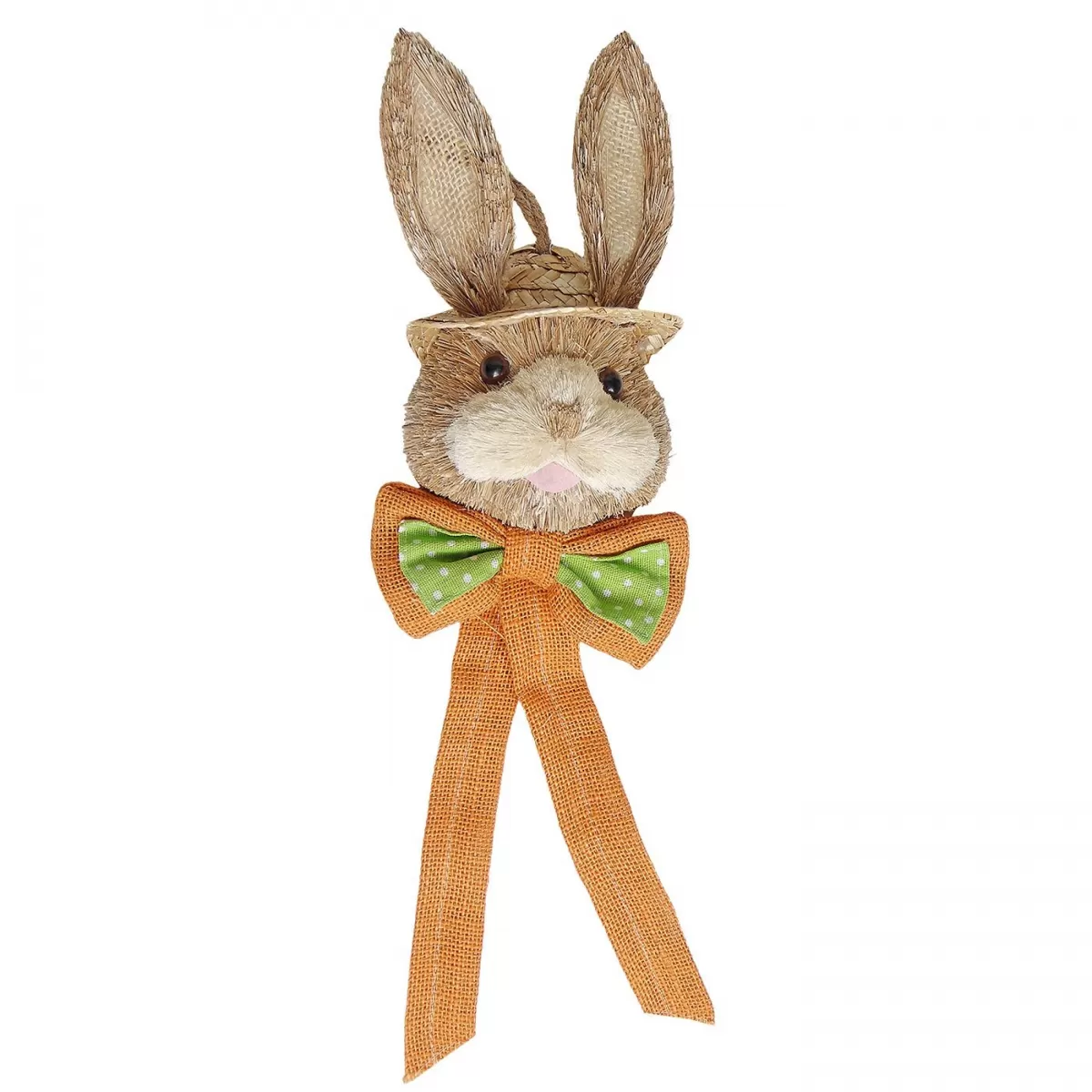 Λαγός ψάθινος κρεμαστός με πορτοκαλί φιόγκο 45x15x9cm Bunny's 932187