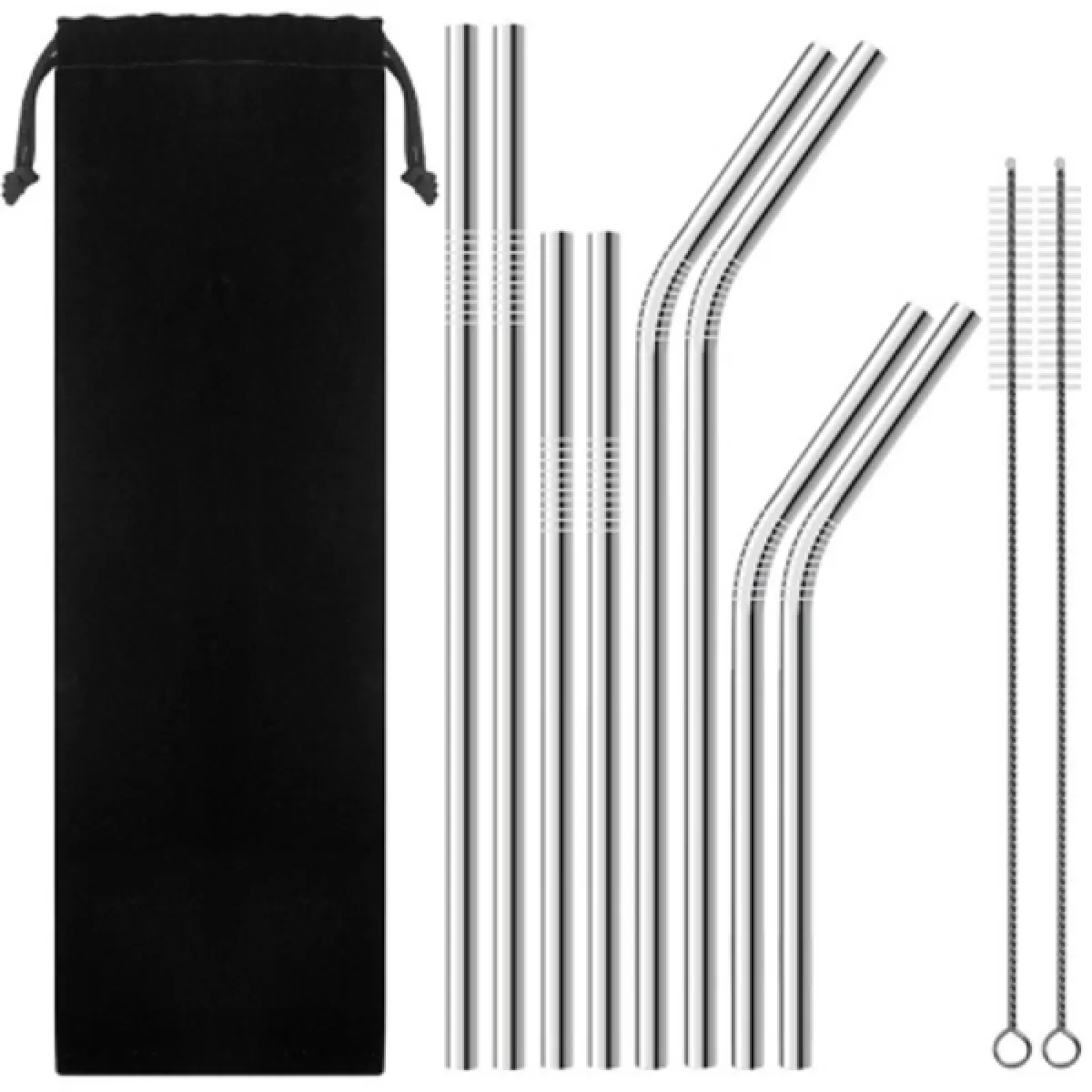 Μεταλλικά Καλαμάκια & Βουρτσάκια Καθαρισμού Σετ Stainless Steel 304