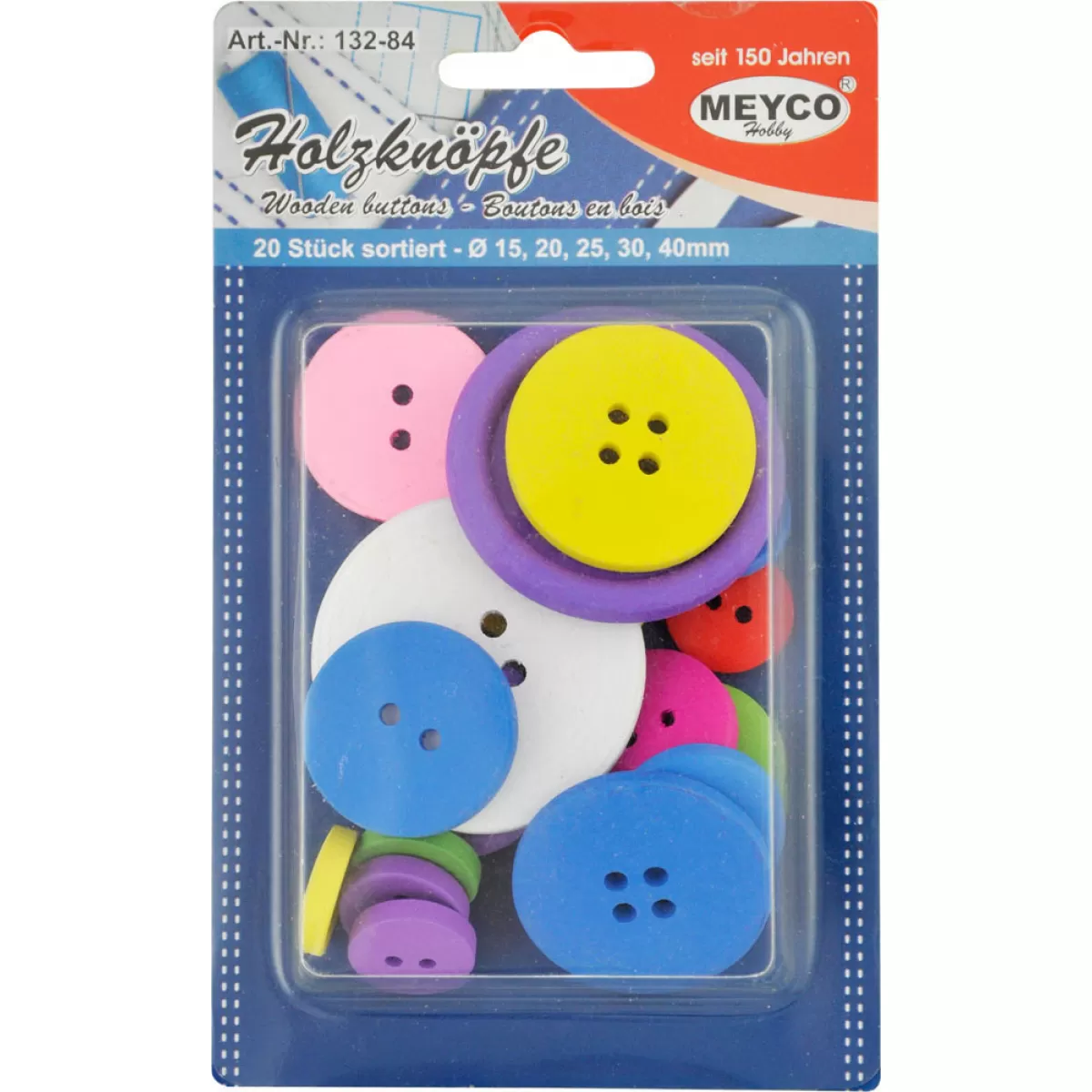 Meyco Κουμπιά ξύλινα χρωματιστά 15/20/25/30/40 χιλ 20 τμχ