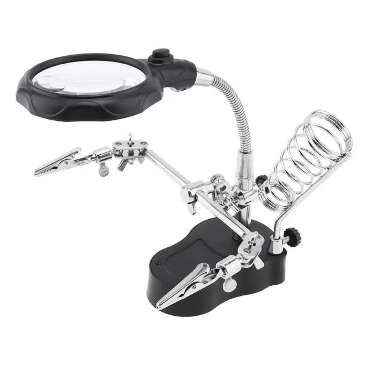 Έχει σπειροειδή λαβή για κολλητήρι και σταθερή βάση. Μετά την αποσυναρμολόγηση του μεγεθυντικού φακού, μπορεί να χρησιμοποιηθεί ξεχωριστά, για παράδειγμα: για ανάγνωση. Λόγω των ελεύθερων χεριών, το σετ θα επιτρέψει την εύκολη κατασκευή πραγμάτων όπως: συγκόλληση, κόλληση ή στερέωση.