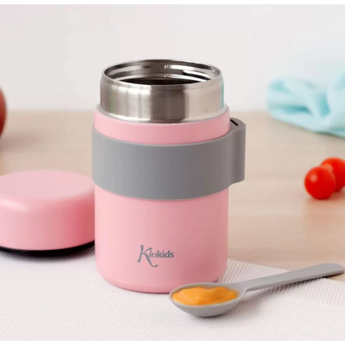 Το θερμοδοχείο φαγητού της Ισπανικής Κiokids είναι ιδανικό για να μεταφέρετε το φαγητό του παιδιού σας στις βόλτες σας. Περιλαμβάνει κουταλάκι που μπαίνει σε βάση πάνω στο δοχείο για να μην χάνεται.