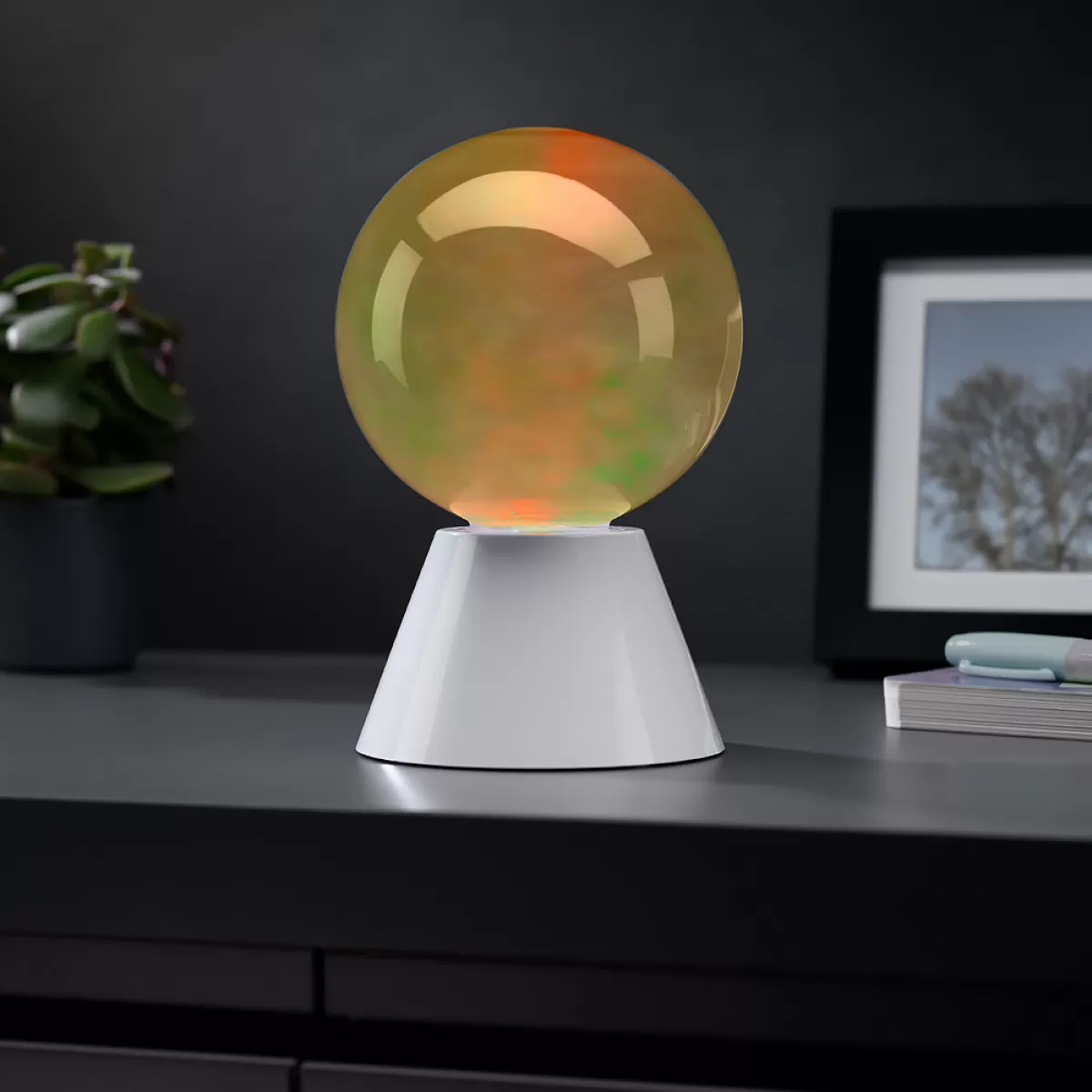 Ένα μαγευτικό σμήνος απο σύννεφα που στροβιλίζεται στο εσωτερικό της σφαίρας και ένα απαλό φώς που αλλάζει χρώμα και αιχμαλωτίζει τη φαντασία. Ο συνδυασμός  αυτός δημιουργεί μια υπέροχη ατμόσφαιρα που καταπραύνει τις αισθήσεις σας και ομορφαίνει το χώρο.