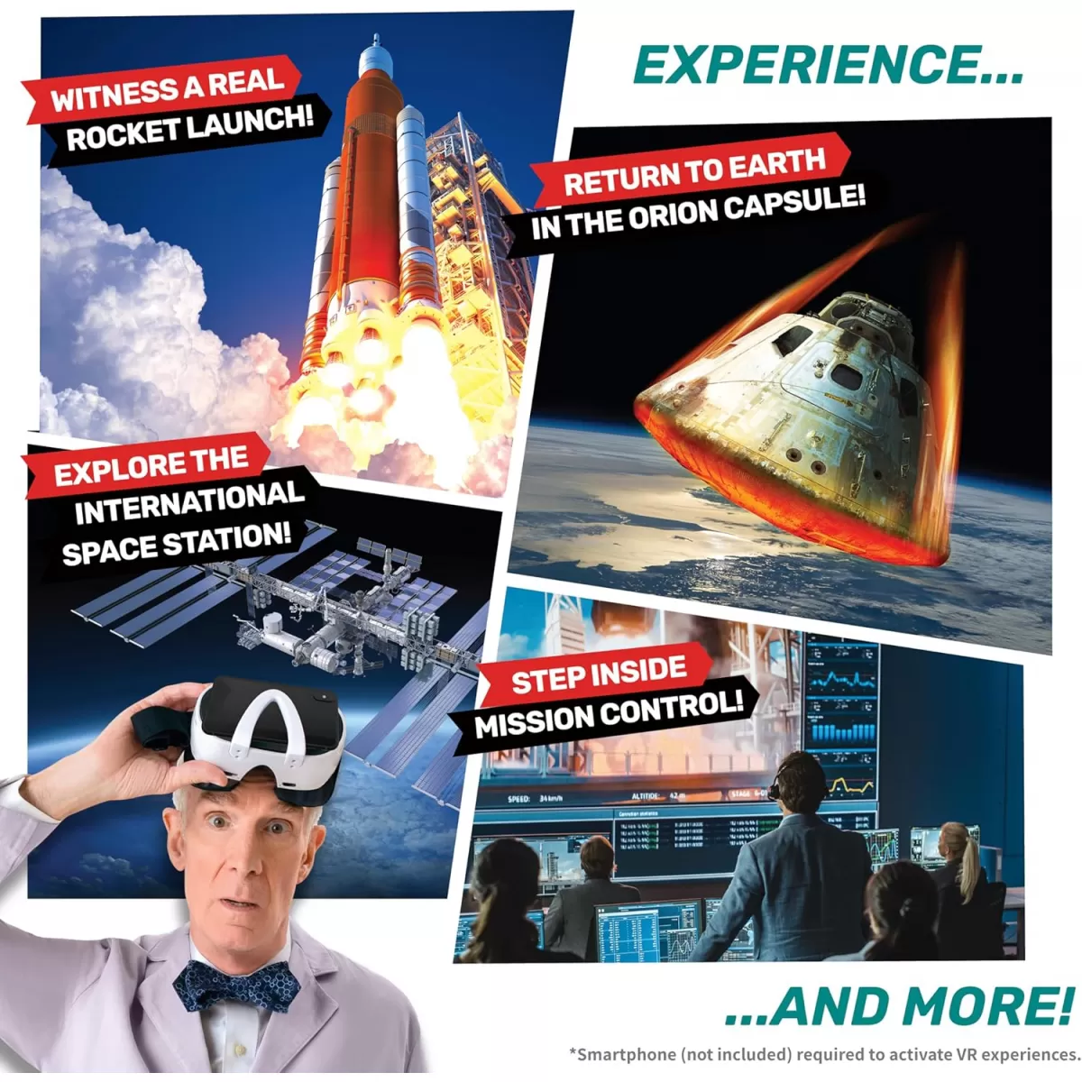 Συναρπαστική μαθησιακή εμπειρία! Απογειώσου με τον Bill Nye “The Science Guy” και ανακάλυψε την επιστήμη πίσω από τη λειτουργία των πυραύλων. Εξερεύνησε τους πλανήτες και την απίστευτη τεχνολογία που χρησιμοποιούμε για να μελετήσουμε το σύμπαν στο βιβλίο 40 σελίδων που περιλαμβάνεται. Περιπλανήσου γύρω από τη Γη, προσγειώσου στη Σελήνη και ταξίδεψε ακόμα πέρα από το ηλιακό σύστημα—όλα σε εντυπωσιακή εικονική πραγματικότητα!