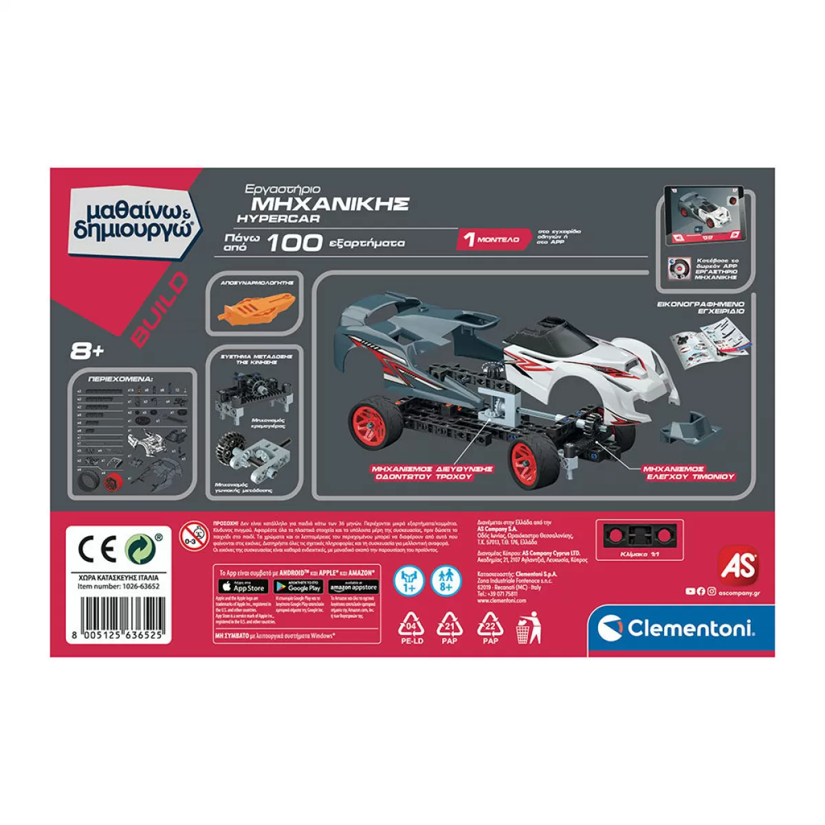 As Clementoni Μαθαίνω και δημιουργώ Build εκπαιδευτικό παιχνίδι εργαστήριο μηχανικής Hypercar για 8+ χρονών (1026-63652)