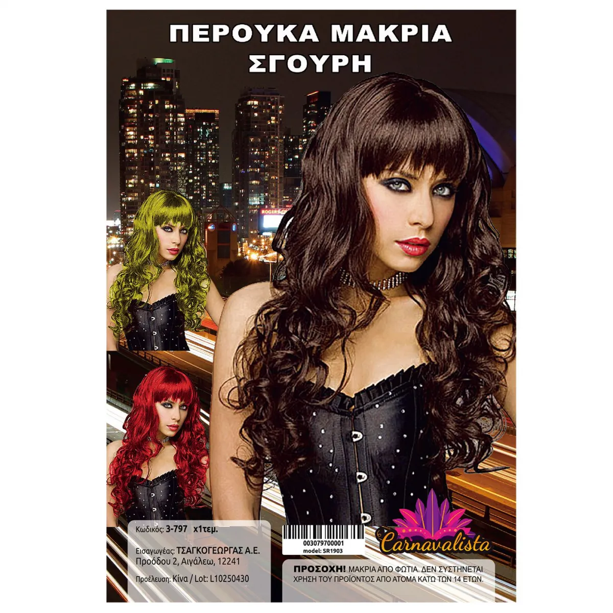 Περούκα μακριά σγουρή Carnavalista 23817 - μαύρη