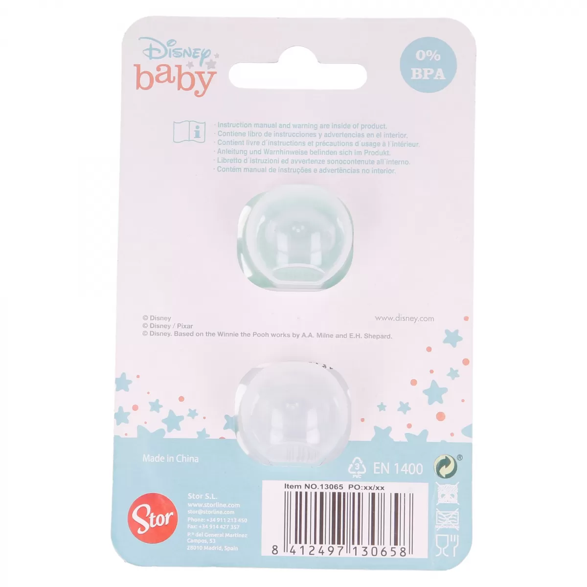 Συσκευασία με δύο αναστρέψιμες πιπίλες με μεγάλη θηλή φυσιολογικής σιλικόνης (6 μηνών και άνω). Διακοσμημένο με πρωτότυπα σχέδια, βασισμένα σε μερικούς από τους πιο διάσημους κινηματογραφικούς και τηλεοπτικούς χαρακτήρες.