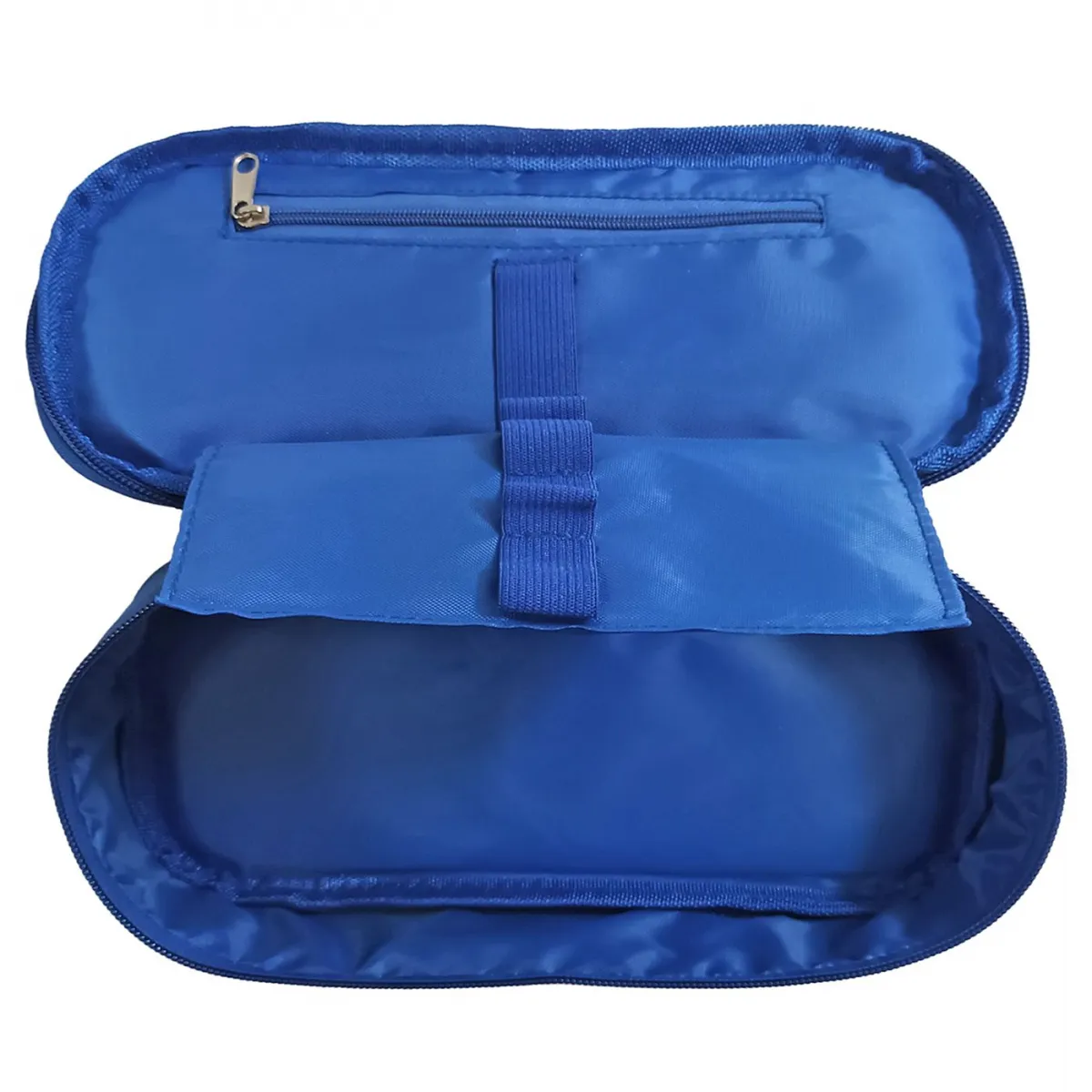 Η κασετίνα αυτή είναι μια εξαιρετική επιλογή για να οργανώσεις τα σχολικά ή γραφικά σου αξεσουάρ. Κατασκευασμένη από υφασμάτινο υλικό, προσφέρει ευχάριστη αίσθηση και αντοχή στη χρήση. Το μπλε χρώμα της προσθέτει μία όμορφη και κομψή αίσθηση, ιδανική για καθημερινή χρήση.
