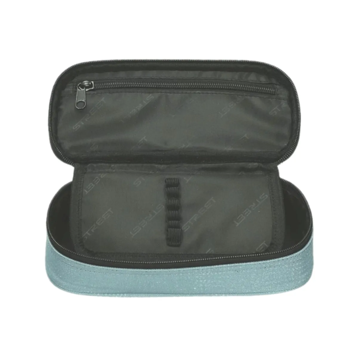 Αυτή η κασετίνα είναι μονής θέσεις και διαθέτει ακόμα μια θήκη με φερμουάρ εσωτερικά. Είναι κατασκευασμένη από υφασμάτινα υλικά, προσφέροντας ανθεκτικότητα και ποιότητα. Το σχήμα της είναι οβάλ, που την καθιστά ιδανική για να αποθηκεύεις τα απαραίτητα σχολικά ή καλλιτεχνικά σου είδη με στιλ.