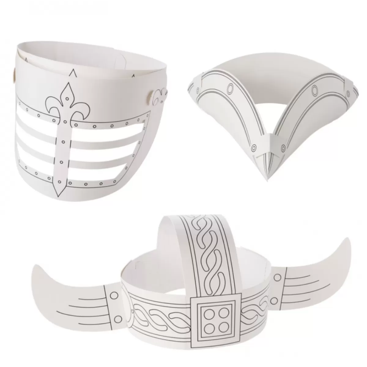 - ταξινομημένο σε 3 σχέδια: πειρατικό καπέλο, καπέλο Βίκινγκ και κράνος ιπποτών