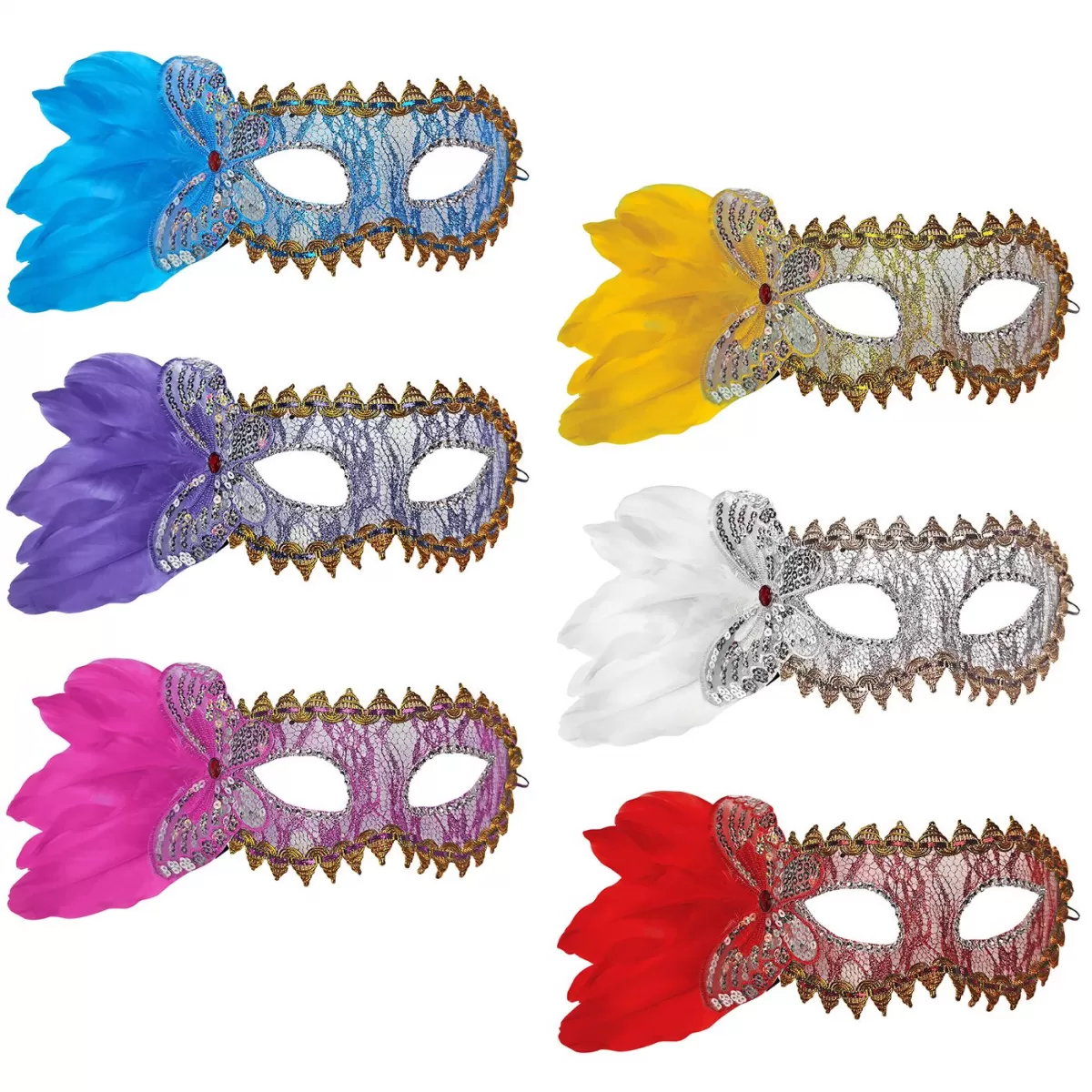 Μάσκα ματιών Βενετσιάνικη με δαντέλα και φτερό 32x10cm 1 τεμάχιο τυχαία επιλογή χρώματος Carnavalista 232589