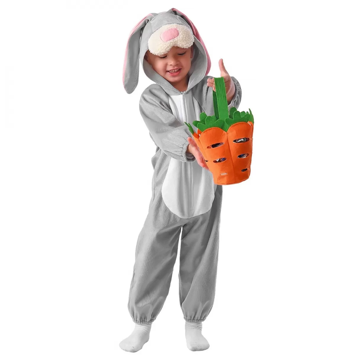 Λαγουδάκι. Περιέχει: ολόσωμη φόρμα με κουκούλα, τσάντα
