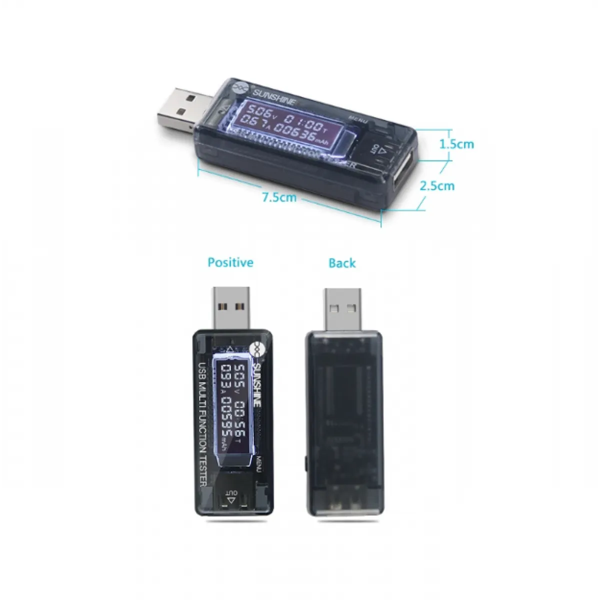 SUNSHINE USB tester φόρτισης SS-302A V/A/Time/mAh