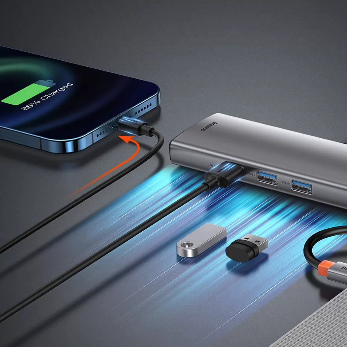 Μεταφέρετε συχνά αρχεία μεταξύ συσκευών; Σας κουράζει η πολύωρη αναμονή για τη μεταφορά δεδομένων; Η Baseus θα σας βοηθήσει να λύσετε παρόμοια προβλήματα! Οι θύρες USB 3.0 σας επιτρέπουν να μεταφέρετε φωτογραφίες, βίντεο ή έγγραφα με ταχύτητες έως και 5Gbps. Τώρα ακόμα και τα μεγαλύτερα αρχεία θα βρουν τον προορισμό τους σε χρόνο μηδέν!