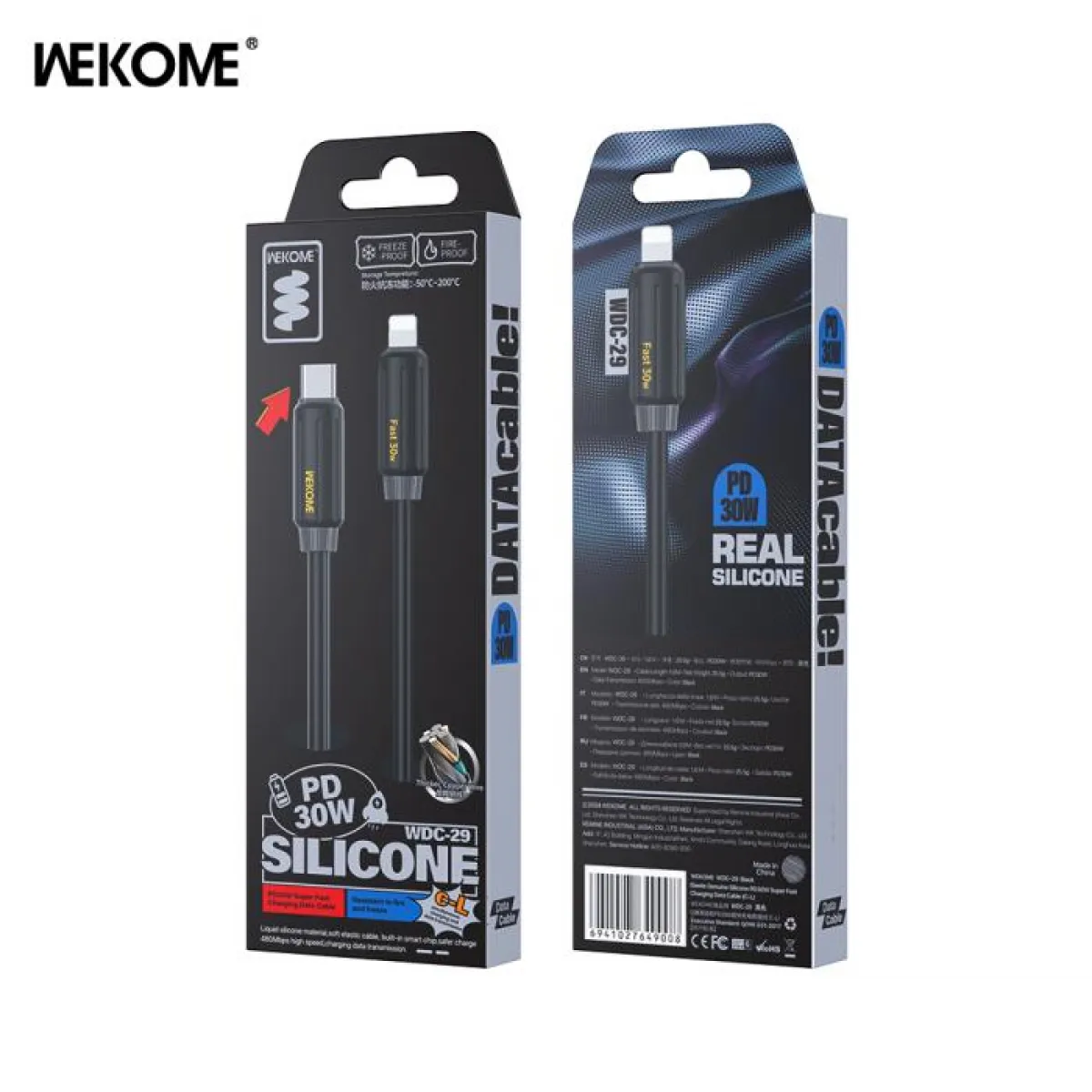 WK WDC-29 Καλώδιο φόρτισης USB-C σε Lightning PD 30W 1m Μαύρο