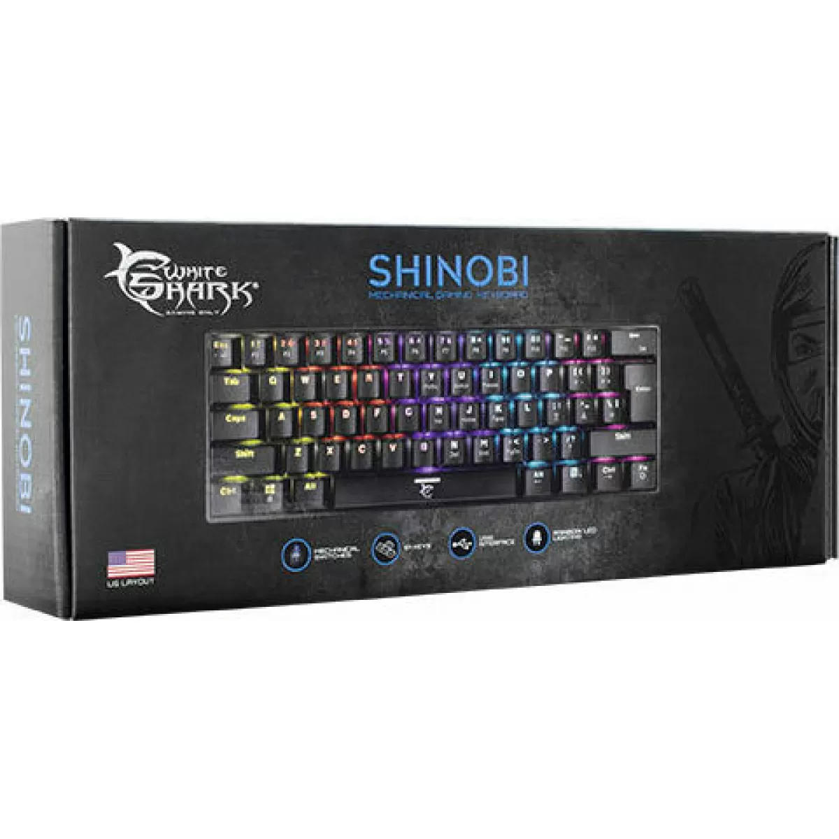 White Shark Shinobi Gaming Μηχανικό Πληκτρολόγιο 60% με Outemu Blue διακόπτες και RGB φωτισμό Αγγλικό US GK-2022B-BLK