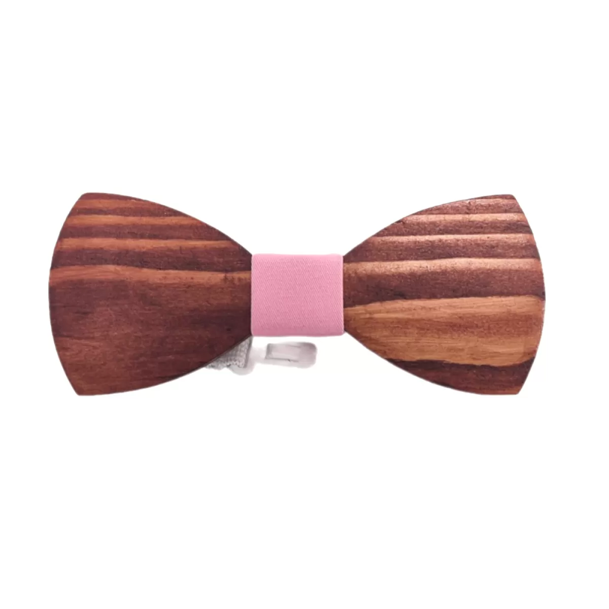 Ξύλινο Ανδρικό Παπιγιόν Μαόνι Με Ροζ Κόμπο